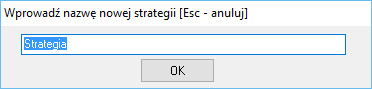 Aby utworzyć nową strategię, należy użyć przycisku "Utwórz nową strategię". Pojawi się okienko dialogowe do wprowadzenia nazwy nowej strategii